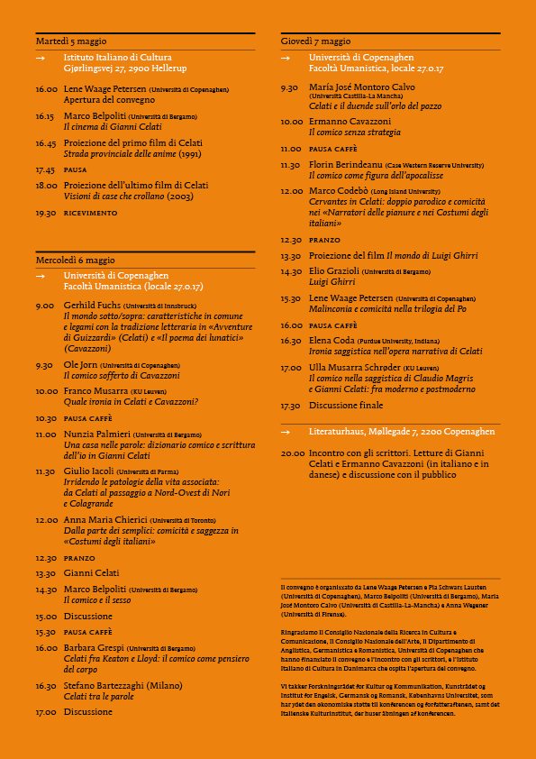 05 Maggio 2009Le strategie del comico, Gianni Celati & Co.Convegno internazionale Università di Copenaghen
